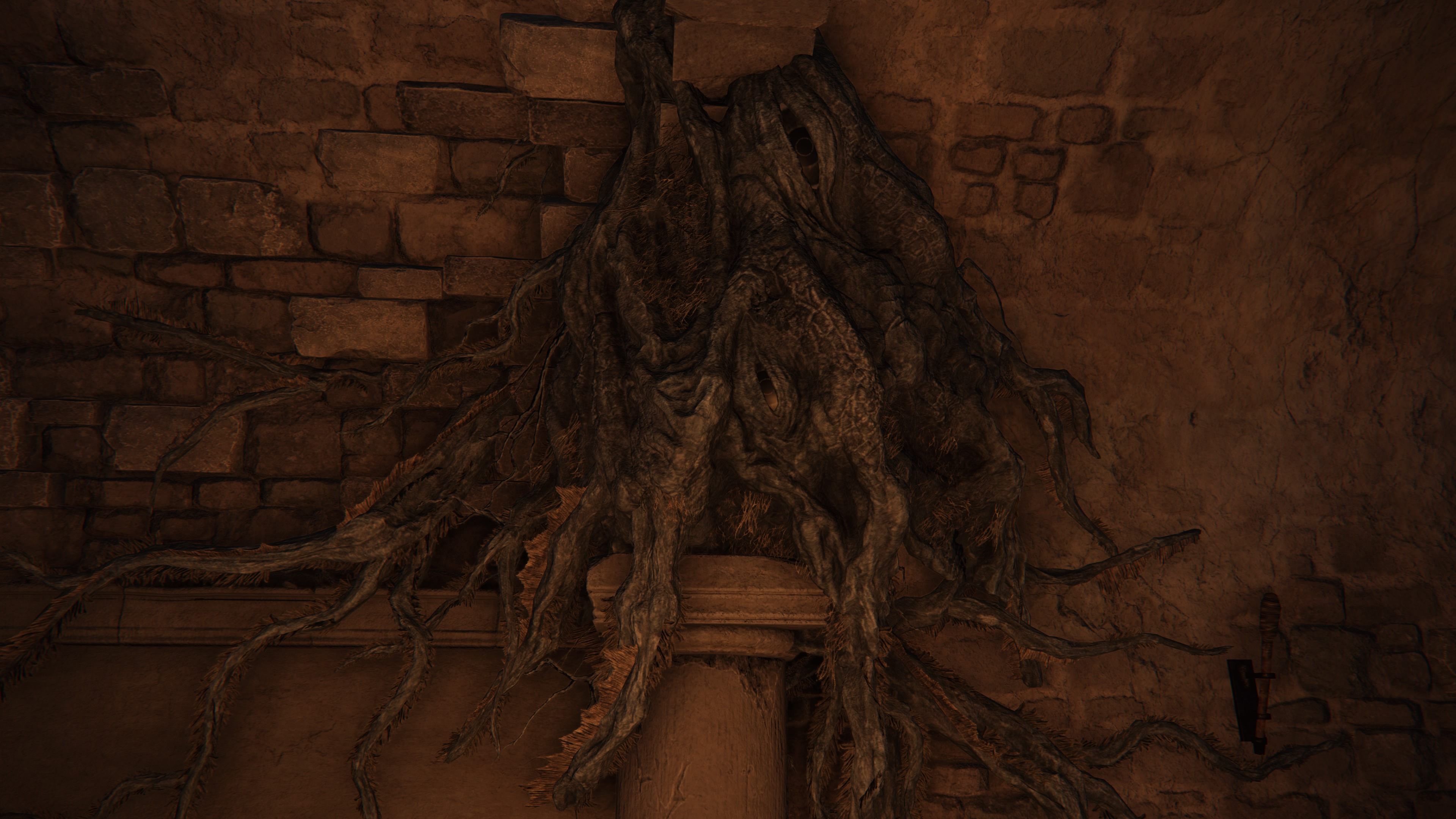死の根が手に入る地下墓や霊廟ヶ原の地下墓などで見られる黒い根