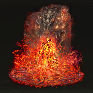 己が姿を大土竜となし、大量の溶岩ブレスを吐く
