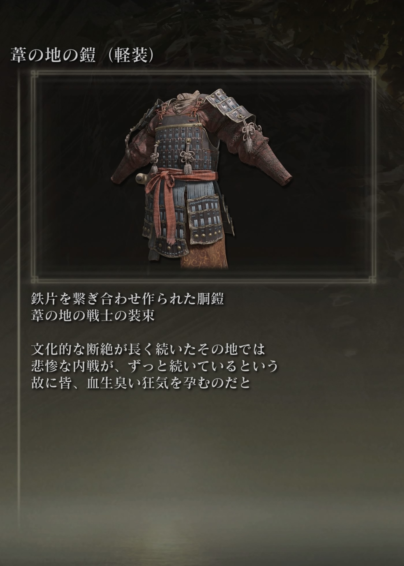アクションゲーム『SEKIRO』の舞台、葦名を彷彿とさせる名前を冠した装備品やキャラクターが登場している。
