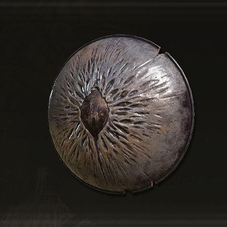 | 蝕紋の大盾 | 蝕の太陽が描かれた、金属の大盾 首のない、霊廟騎士たちの得物 蝕まれ、色を失くした太陽は 魂無きデミゴッドの守護星であり 彼らを、運命の死から遠ざけるという |