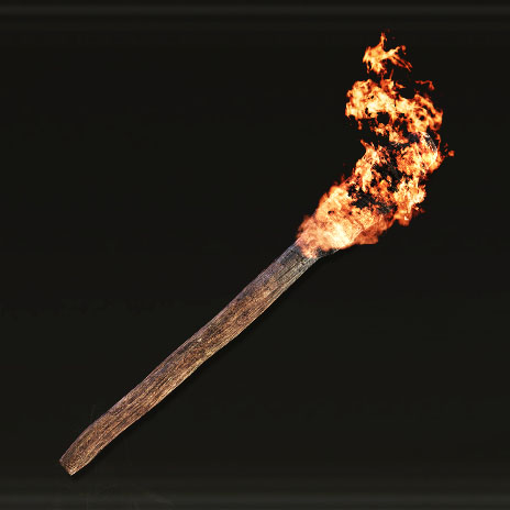 | 炎紋のウッドシールド | 縦に長い、木製の中盾 大きさの割に軽く、扱いやすい 狂い病の村の兵たちの得物 黄色い炎は、病の象徴であり 村に近づく者への警告である |