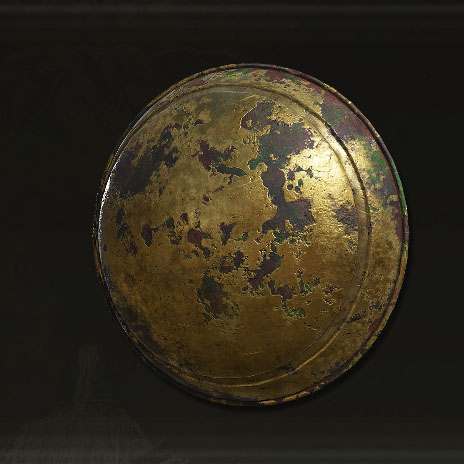 | 金装の大盾 | 黄金の塗装を施した、金属の大盾 ゴドリックに仕えた騎士たちの得物 その塗装は、黄金樹の原初にならい 赤味を帯びている。それは郷愁の色だ |