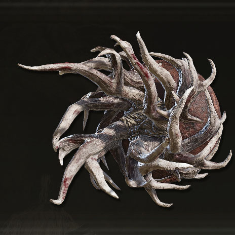 | 単眼の盾 | 単眼異形の神を象った、白石の仕掛け盾 開いた口から、砲身が覗いている それは、女王マリカが討ち取ったそされる かつて巨人たちが祀った悪神である 専用戦技「炎の唾」 盾を構え、砲身から火の玉を放つ戦技 火の玉は、着弾により爆発する |