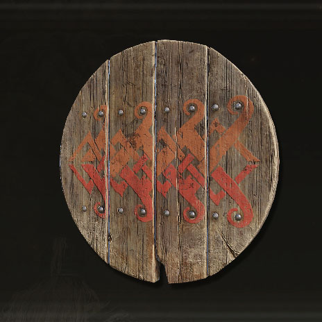 | 馬紋のウッドシールド | 縦に長い、木製の中盾 大きさの割に軽く、扱いやすい 回転する馬頭の紋章は、疾く駆ける様を示す |